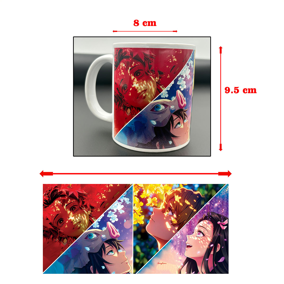 Laugham Demon Slayer Combo Pack | Cup, Keychains, Posters & Magnet Ceramic Coffee Mug (350 ml, Pack of 14)